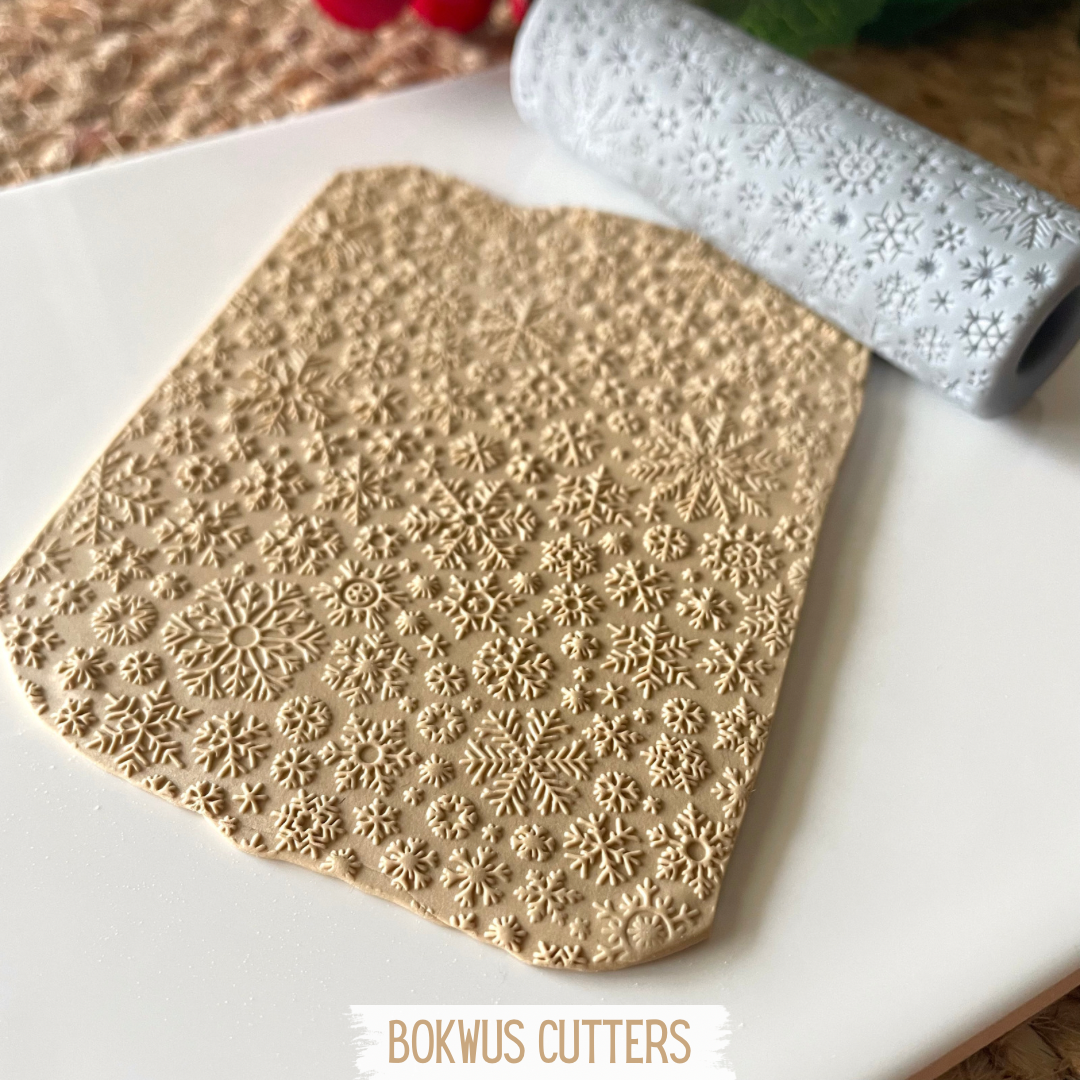 • Rolo de textura com padrão de flocos de neve sobre massa bege