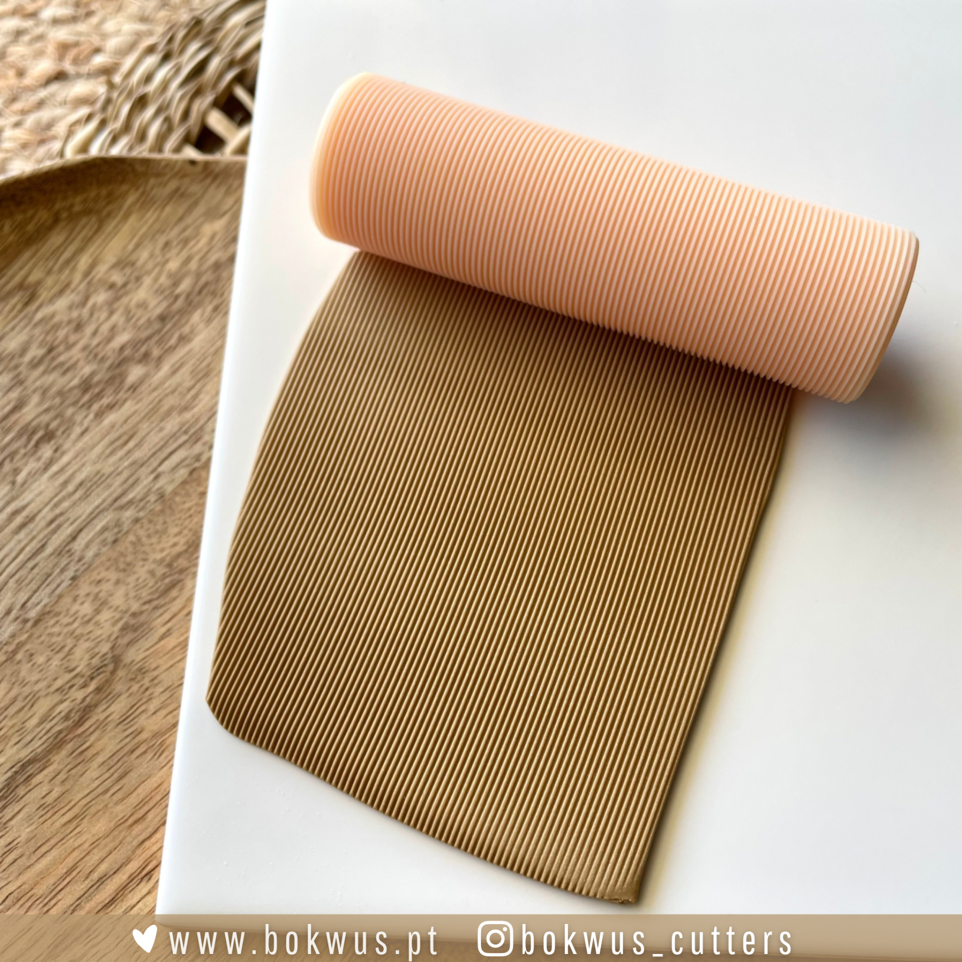 • Cortador de massa rosa com padrão de ranhuras sobre superfície branca