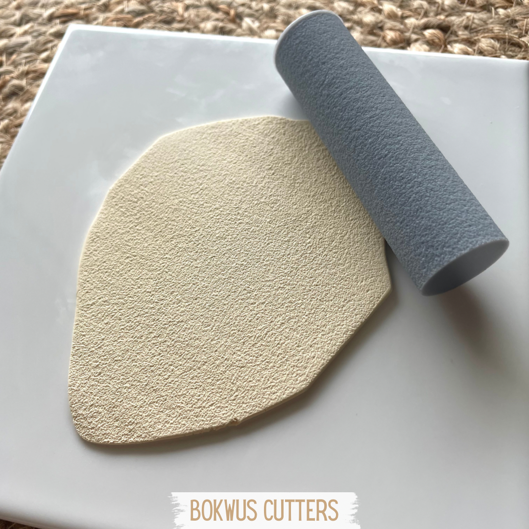 • Ferramentas para corte e texturização com peça bege texturizada e rolo cinza
