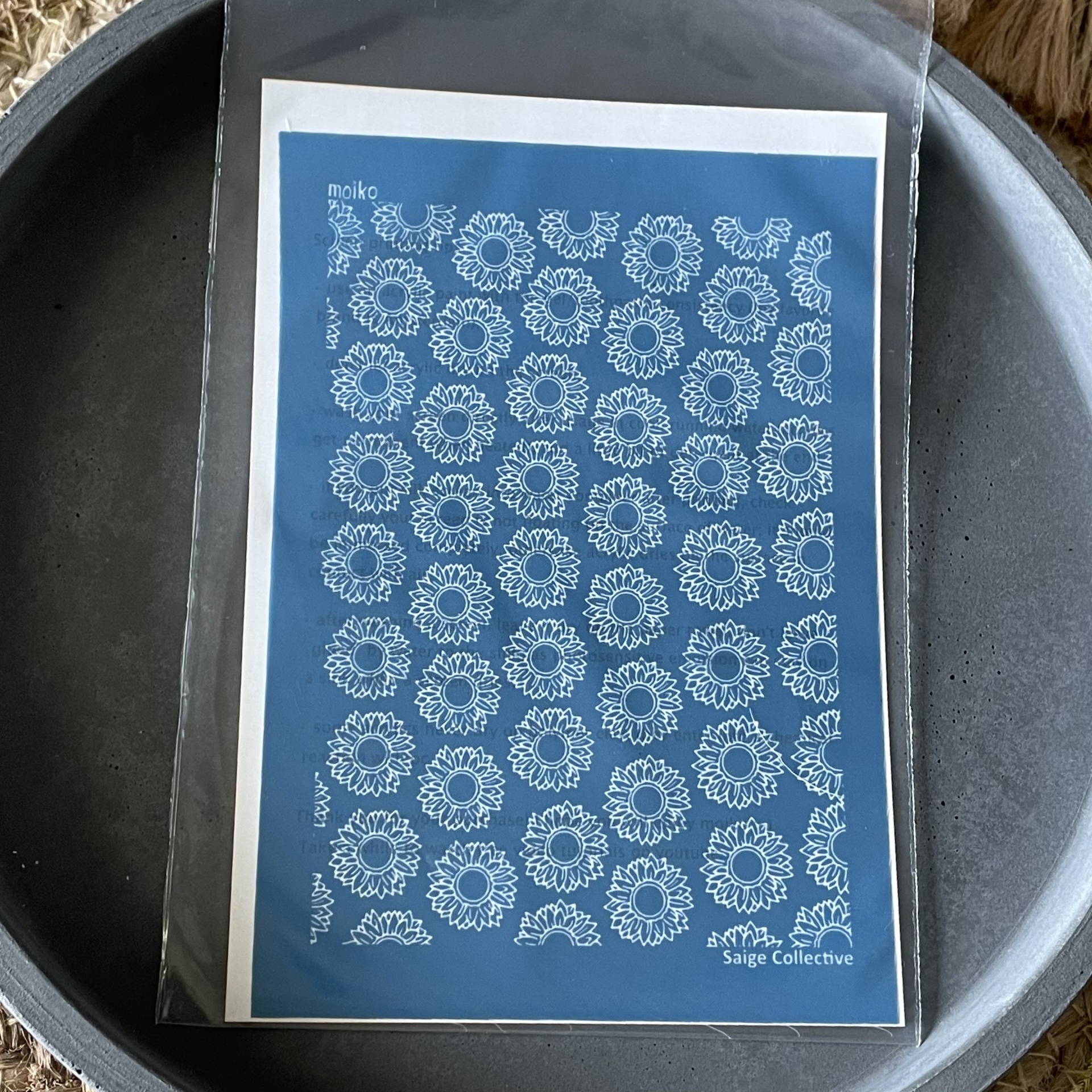 - esticar um rectângulo de cerâmica plástica com uma espessura homogénea - colocar o silk screen sobre a massa e pressionar gentilmente sobre toda a superfície (a parte mais brilhante deve ficar virada para baixo, a inscrição "Moiko" deverá estar legível e não em espelho) - numa das extremidades colocar um pouco de tinta acrílica (idealmente deverá ter uma consistência mais grossa tipo gel ou pasta de dentes) - esticar a tinta por toda a superficie com a ajuda de uma espátula ou cartão de crédito antigo - retirar o excesso de tinta - remover o silk screen cuidadosamente - lavar imediatamente o silk screen sob água corrente. Não utilizar nenhum tipo de escova ou produto que o possa danificar. - secar o silk screen com a ajuda de papel absorvente ou uma toalha