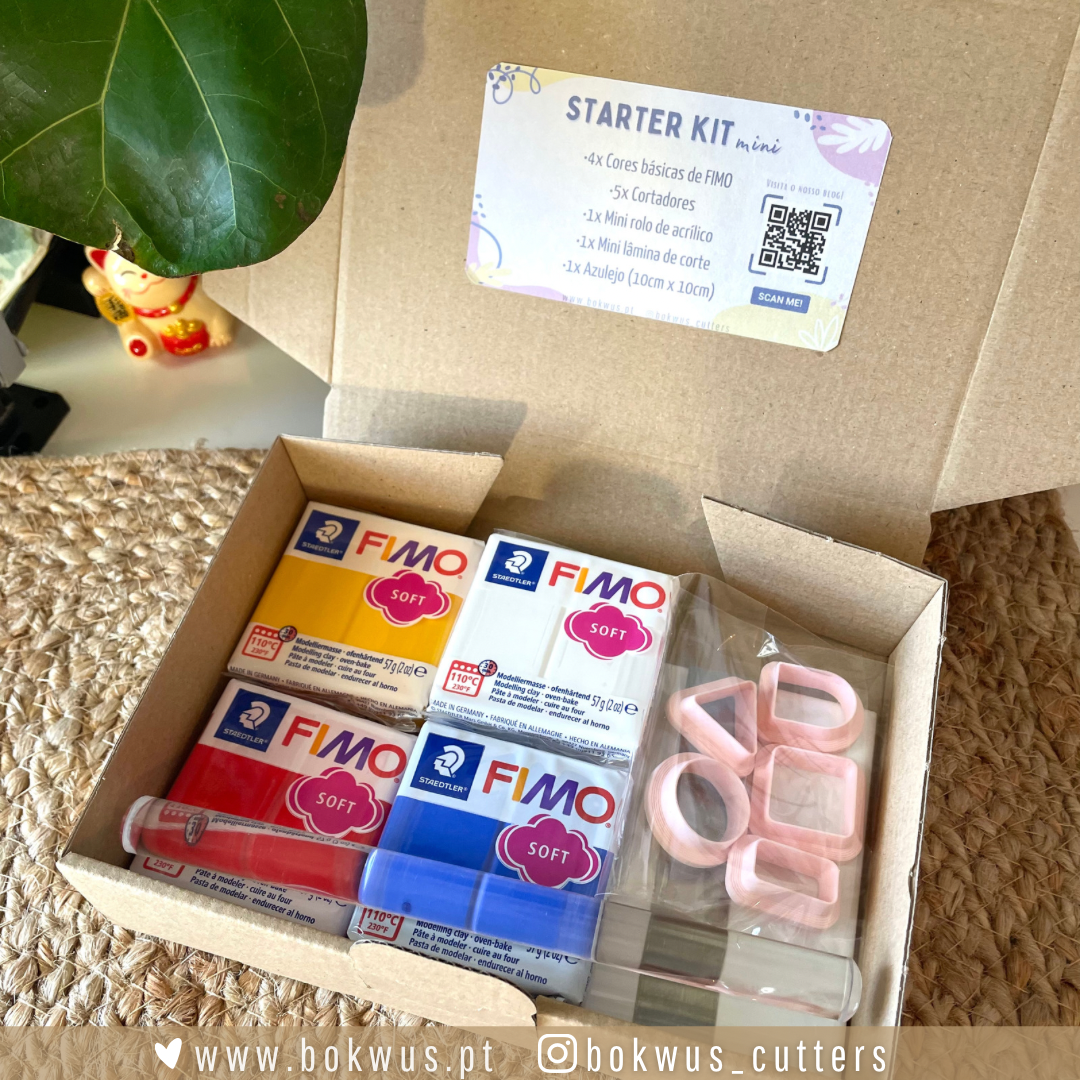 Starter Kit MINI - Kit de iniciação MINI 19,90 € Desconto de %. IVA incluído. Partilhar Compra este produto e ganha 19 Pontos! Saber mais O produto encontra-se sem stock. O kit de iniciação inclui: •4x Cores básicas de FIMO (branco, vermelho indiano, azul brilhante e amarelo girassol) •5x Cortadores •1x Mini rolo de acrílico •1x Mini lâmina de corte •1x Azulejo (10cm x 10cm) Também disponível:STARTER KIT PRO STARTER KIT ATENÇÃO: A reserva dos KITS é válida por 24 horas. Caso o pagamento não seja efectuado nesse período a encomenda será cancelada. Marca Bokwus Cutters Tags caixa temáticacaixacerâmica plásticastarter kitkitstarterkit de iniciaçãofimonovidade Características